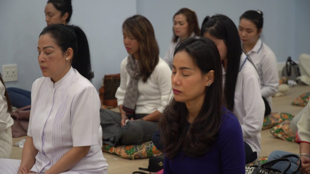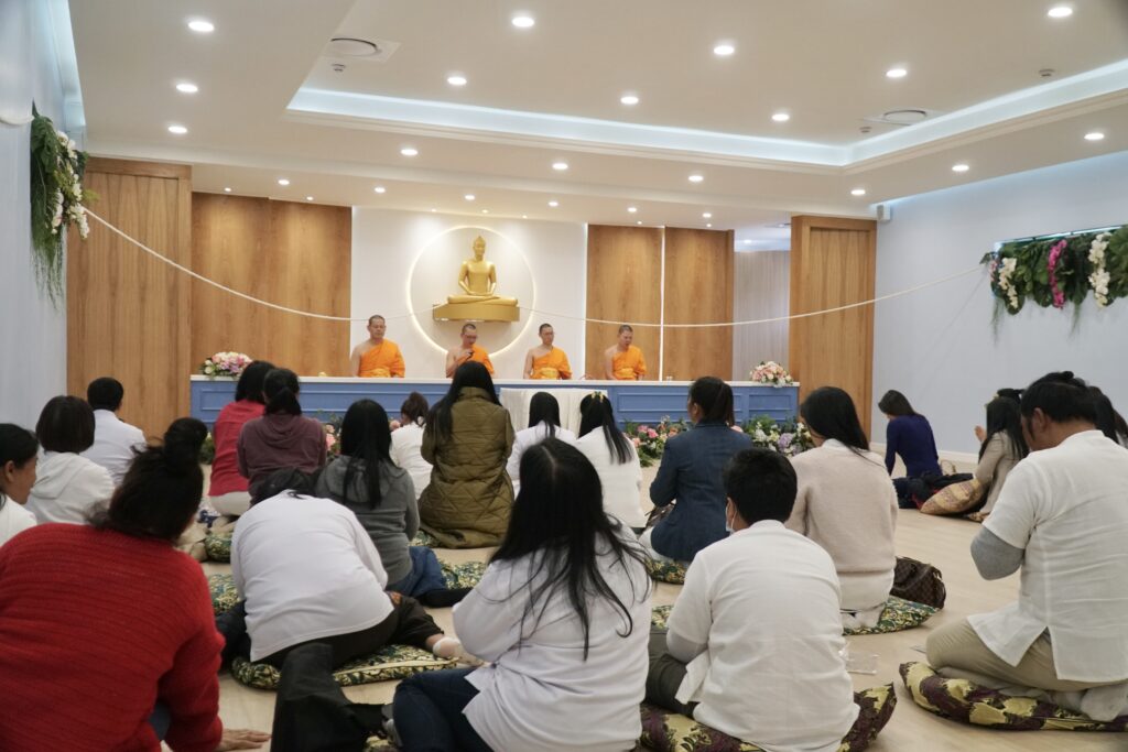 The ceremony started when the president monk had arrive and led all participants to pay respect the Triple Gem. After that all laity had requested for 5 precepts, listened to the Lord Buddha’s Mantra chanting from the monastic community, and meditated together by following Laung Por Dhammachayo’s meditation guidance.
